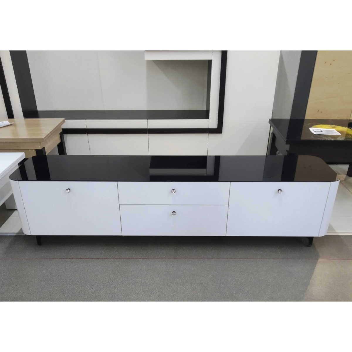 Глянсова тумба округлої форми Мілана зі склом виготовлена в стилі Ф“южн (Fusion).