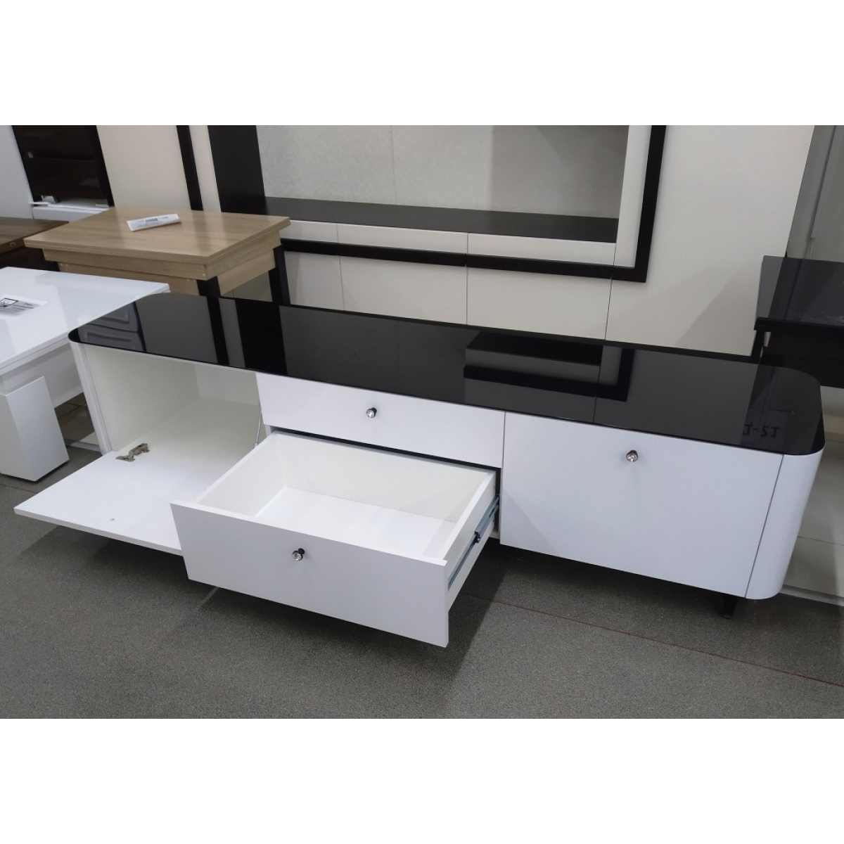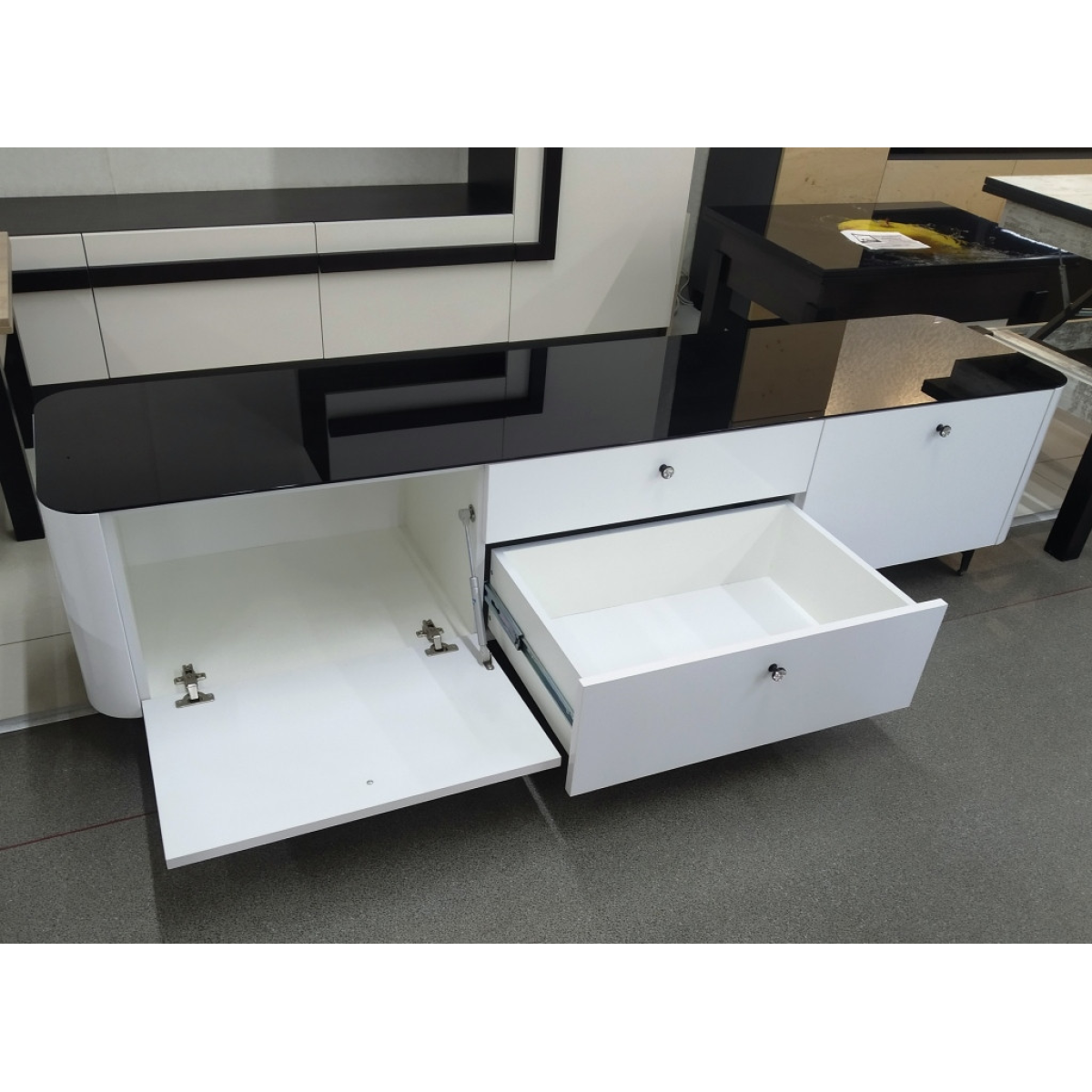 Глянсова тумба округлої форми Мілана зі склом виготовлена в стилі Ф“южн (fusion).