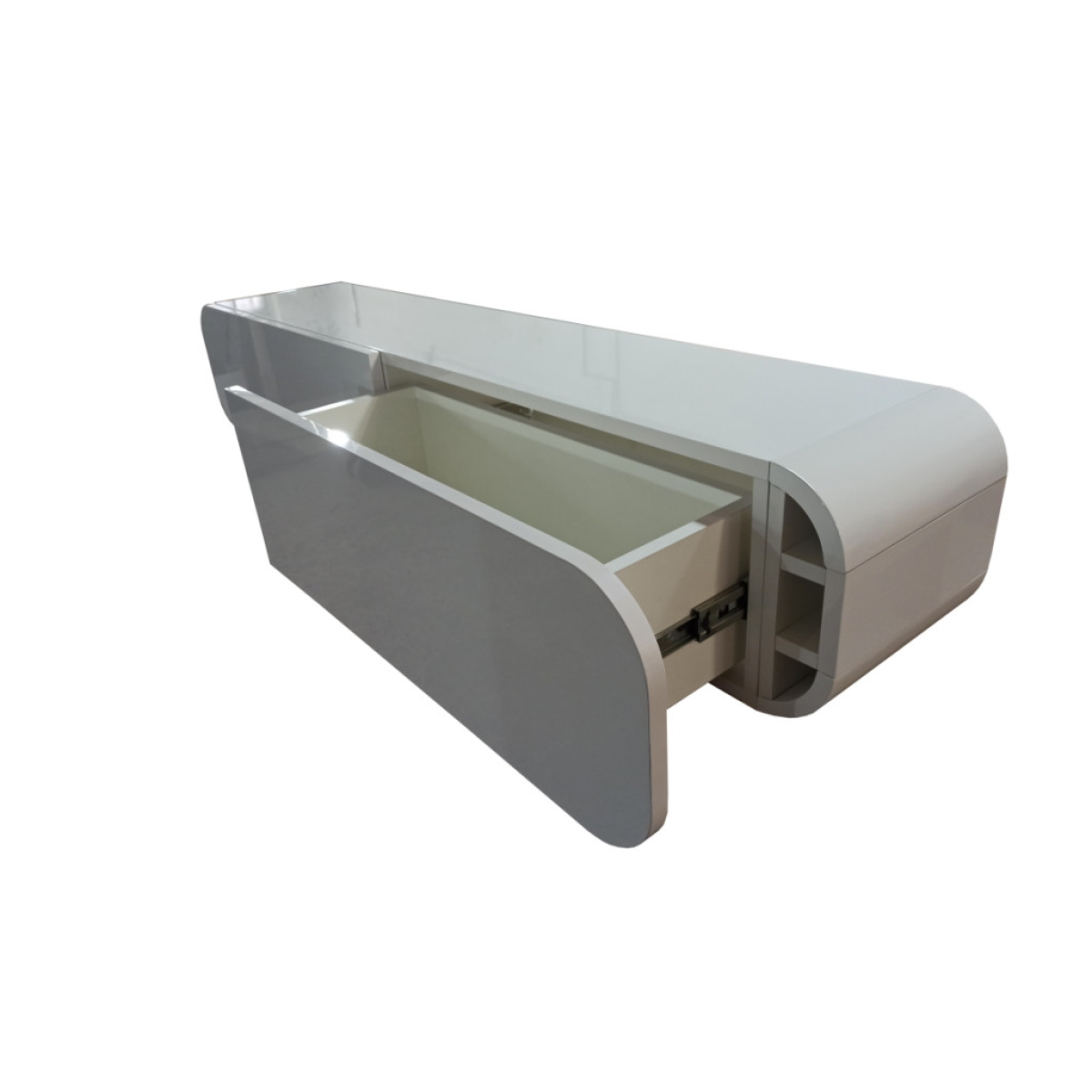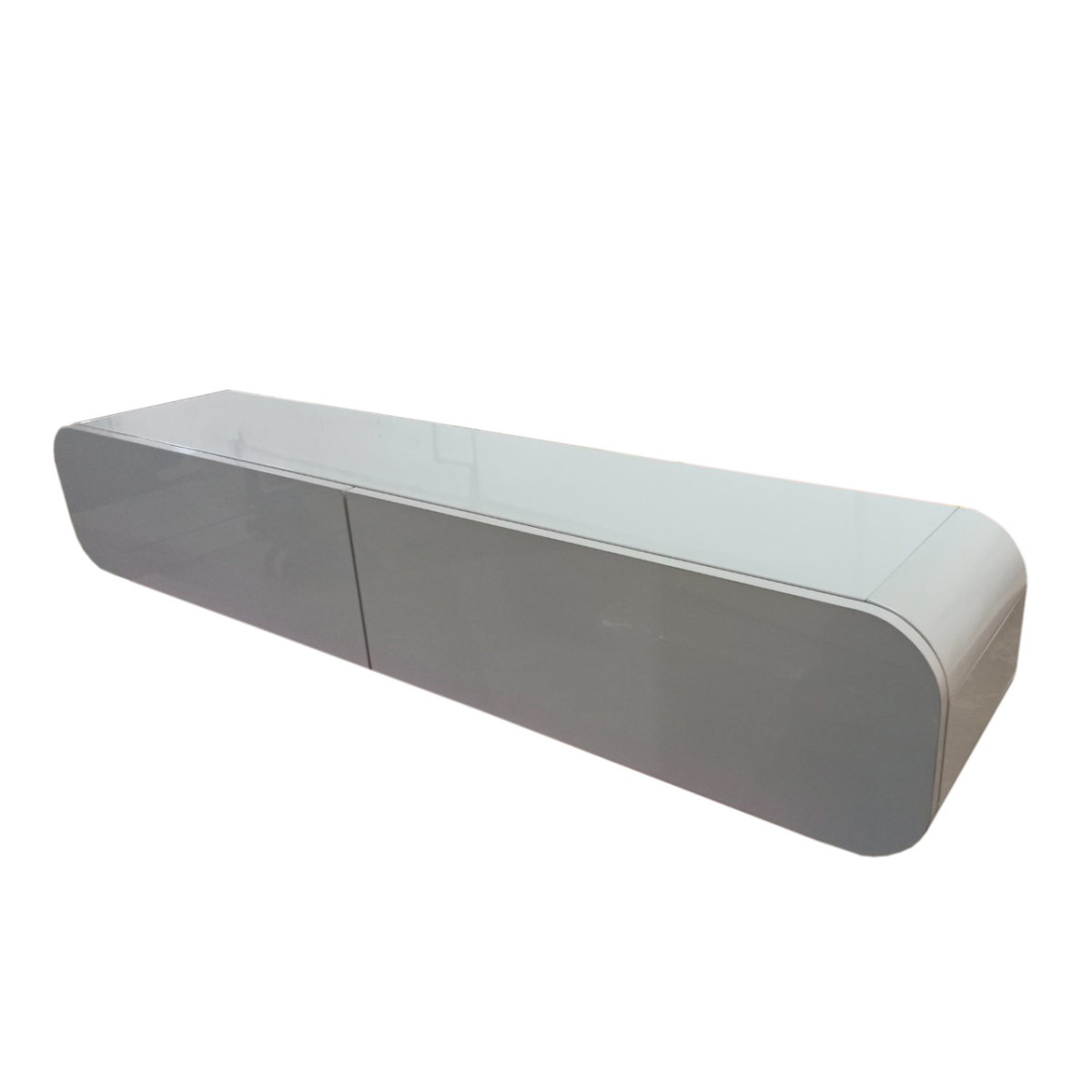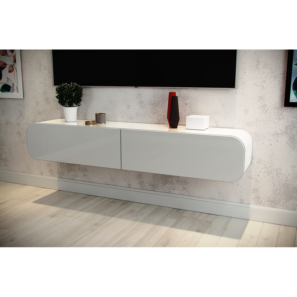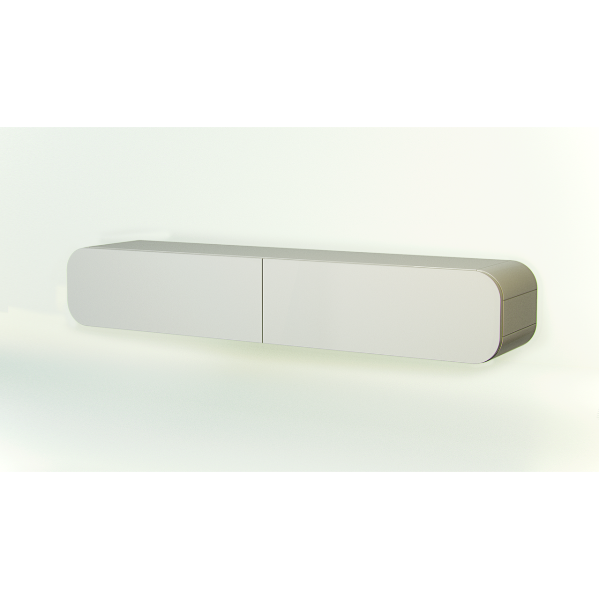 Біла глянсова підвісна Тумба ТВ “Скай“ з округленими краями