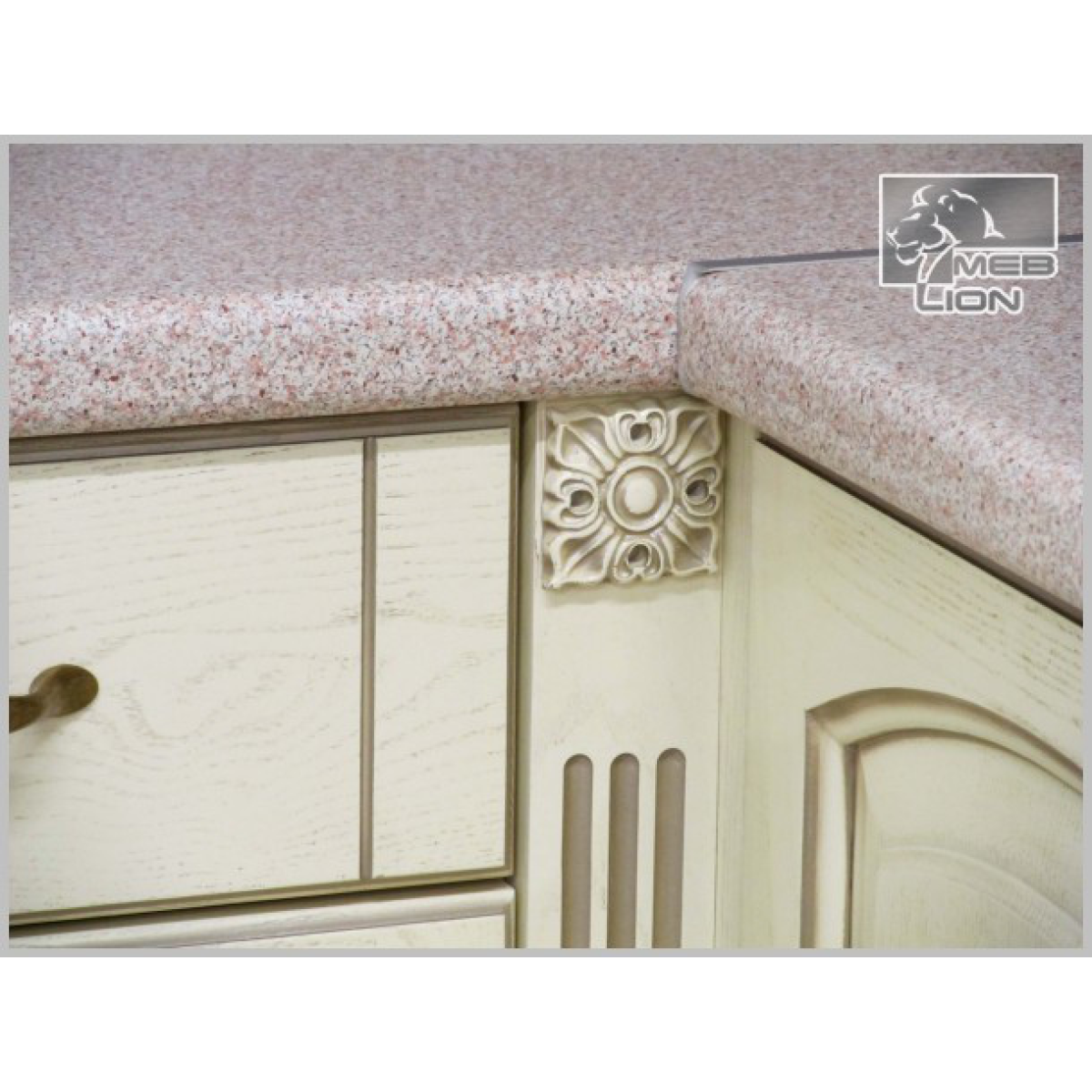Кухня “Bellissimo“ має багато переваг, які не залишать байдужими: різні малюнки на фасадах сушарки, декоративні розетки на пилястрах, високий карниз із масиву ясеня з оригінальною косичкою, скла з малюнками та ефектом морозного скла, чудові ящики для спецій і багато іншого. Кухня укомплектована фурнітурою світових лідерів: петлі та системи висування ящиків австрійської фірми Blum з довідниками. Стільниця — пластик на вологостійкому основі буде надійним помічником на довгі роки. Отвір під мийку та варильну поверхню можна зробити за технікою покупця або допомогти з комплектацією.