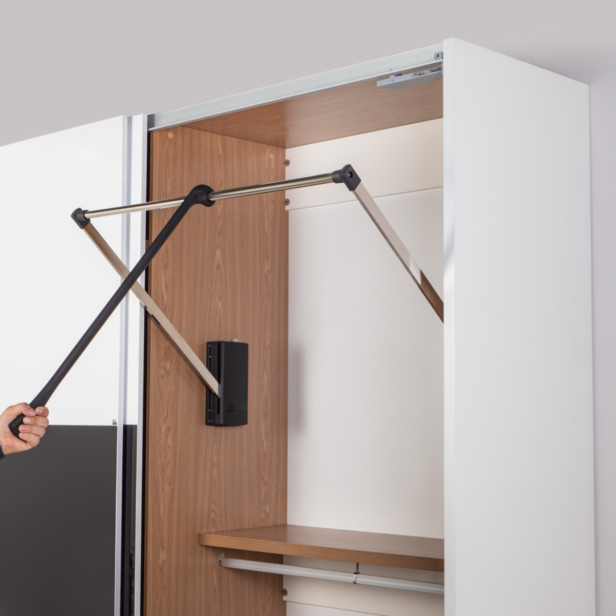У шафах із системою верхнього підвісу не потрібно постійний догляд за ходовим профілем, оскільки сміття не може влучити в нього навіть теоретично, а пил не може вплинути на роботу механізму.