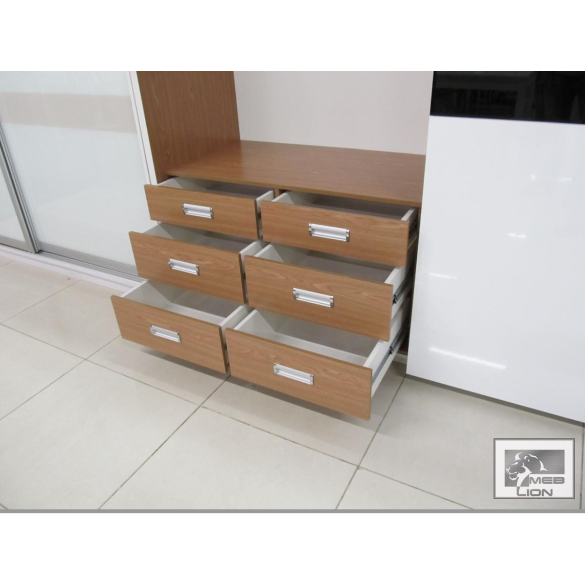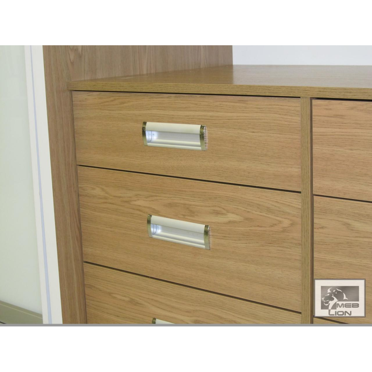 МДФ плита з високоглянсовим покриттям виробництва турецької компанії AGT, високоякісне ламіноване ДСП колір білий і дуб седан, розсувна система Hettich.
